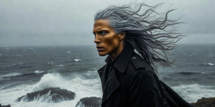 Light brown skin, wavy hair, boyish charm with sharp features.